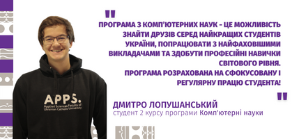 CS@UCU – бакалаврська програма з комп’ютерних наук, яка готує лідерів галузі, що своїми знаннями, навичками та настановами сьогоднішнє та майбутнє України та світу.